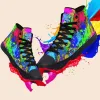 Colorful High-top Canvas Shoes with basic design, covered with eye-catching patterns. We hope this pair of shoes will bring comfort and fashion, suitable for both school, going out, or as a meaningful gift. The shoes are carefully selected from the sole material, lining, patterned canvas fabric to create softness but firmness, ventilation, bringing comfort. The pattern on the canvas is vivid, clear, durable, fade-resistant.