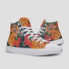- Upper: Sturdy canvas fabric with water-resistant properties, showcasing a vivid Peony Floral.