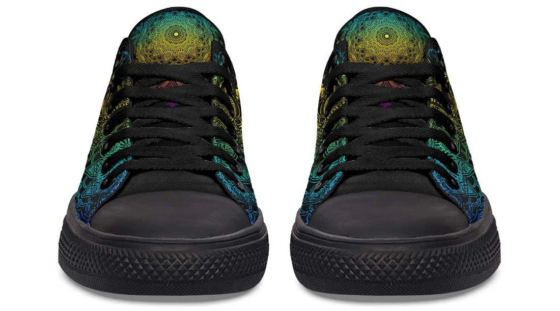 Psychedelic Skull Mandala Low Top Black Canvas Shoes with basic design, covered with eye-catching patterns. We hope this pair of shoes will bring comfort and fashion, suitable for both school, going out, or as a meaningful gift. The shoes are carefully selected from the sole material, lining, patterned canvas fabric to create softness but firmness, ventilation, bringing comfort. The pattern on the canvas is vivid, clear, durable, fade-resistant.