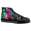 Splatter Stains Black High-Top Canvas Shoes with basic design, covered with eye-catching patterns. We hope this pair of shoes will bring comfort and fashion, suitable for both school, going out, or as a meaningful gift. The shoes are carefully selected from the sole material, lining, patterned canvas fabric to create softness but firmness, ventilation, bringing comfort. The pattern on the canvas is vivid, clear, durable, fade-resistant.