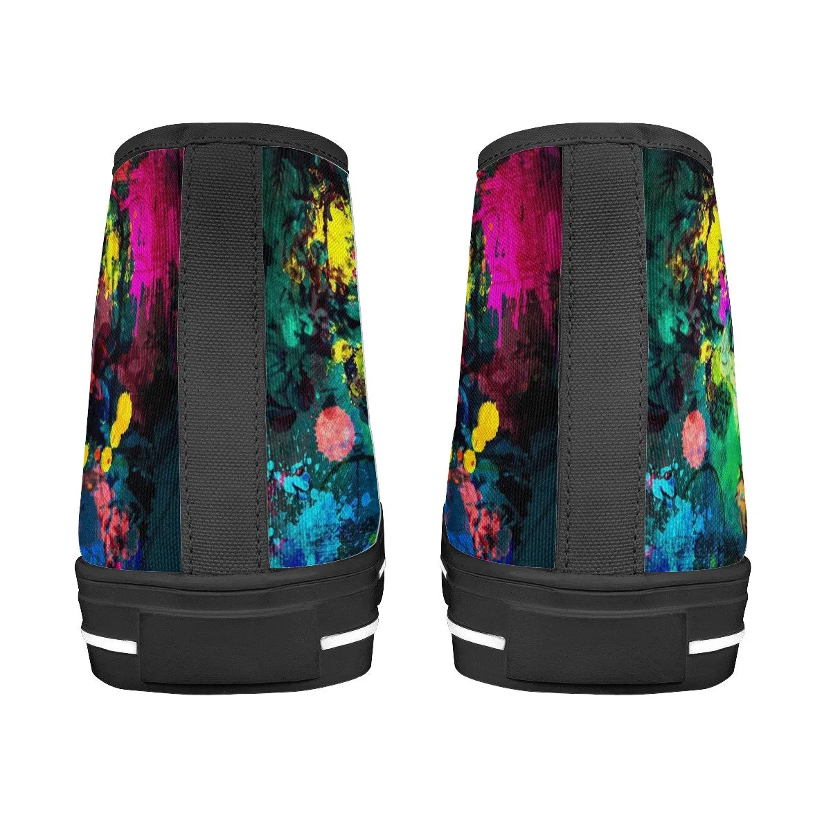 - Upper: Sturdy canvas fabric with water-resistant properties, showcasing a vivid Splatter Stains.