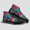 Splatter Stains Black High-Top Canvas Shoes with basic design, covered with eye-catching patterns. We hope this pair of shoes will bring comfort and fashion, suitable for both school, going out, or as a meaningful gift. The shoes are carefully selected from the sole material, lining, patterned canvas fabric to create softness but firmness, ventilation, bringing comfort. The pattern on the canvas is vivid, clear, durable, fade-resistant.